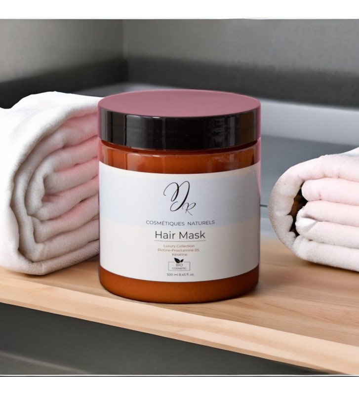 HAIR MASK, MASQUE CAPILLAIRE LUXURY COLLECTION 500ML : Notre masque capillaire professionnelle a pour but de solutionner le manque des nutriments de vos chevelures. Nous avons alors créé dans nos laboratoires une formule enrichi à la kératine, à la biotine et à la provitamine B5. Aide à la restructuration de vos cheveux, élimine l’effet crépu et donne une douceur immédiate à vos cheveux.